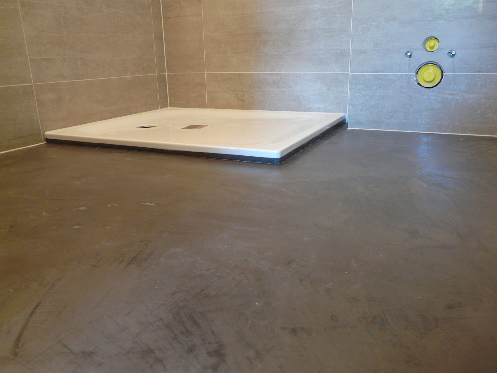 Strapazierfähige, pflegeleichte, wasserfeste Bodenbeschichtung in Betonoptik,