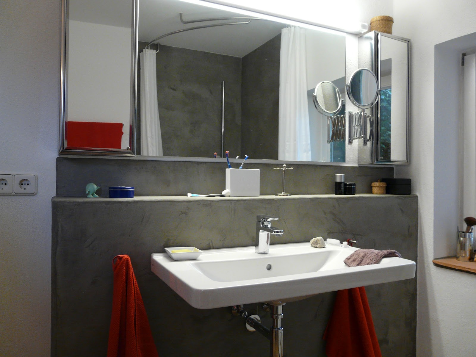Bad/Dusche, Toiletten- und Waschtisch-Vorbau (15 m²) in Sichtbetonoptik,