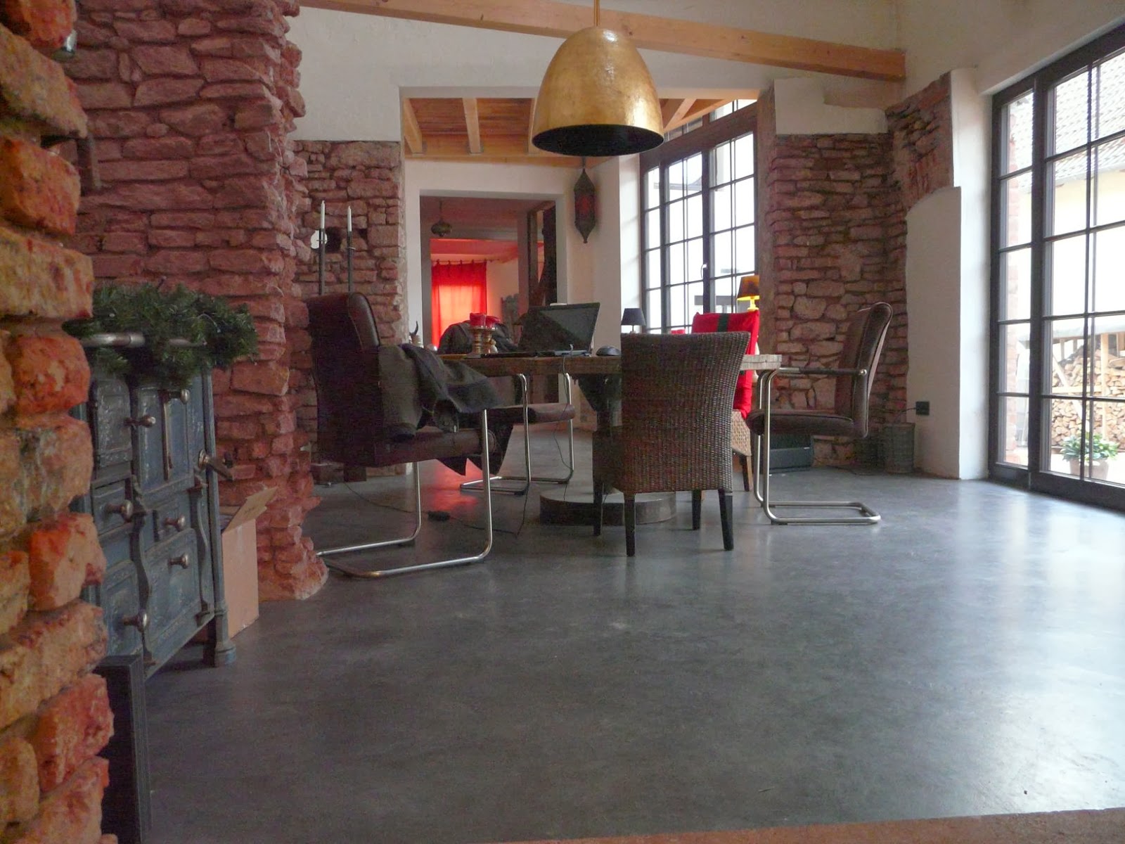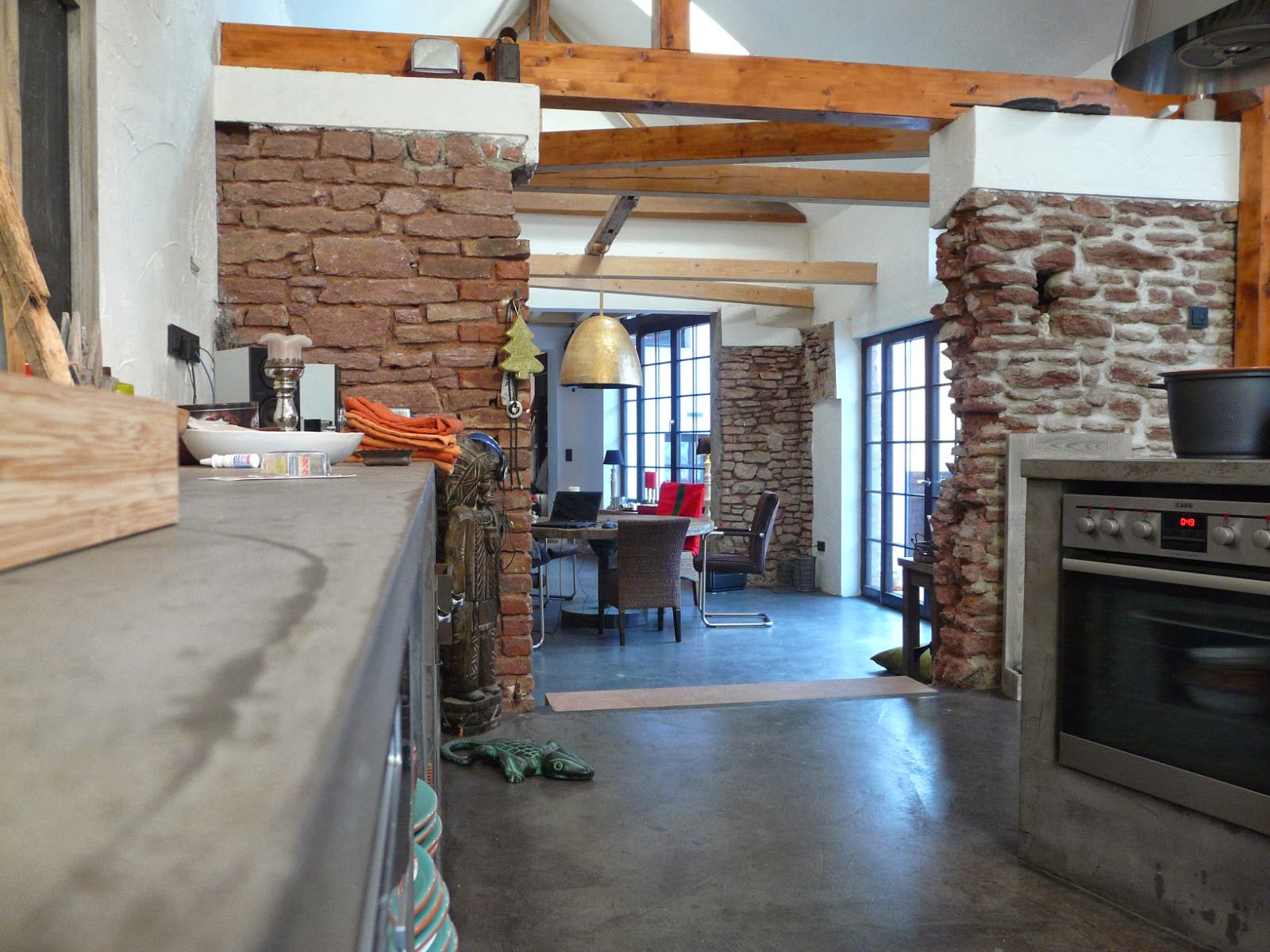 in Beton-Cire kombiniert mit Beton-Floor im offenen Koch- und