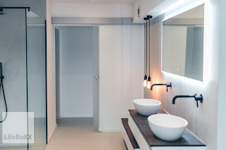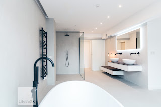 Mit Microtopping werden alte Fliesen verabschiedet und ein klarer, fugenlosen Raum geschaffen, ohne die Ohne aufwendiger Restaurationsarbeiten.